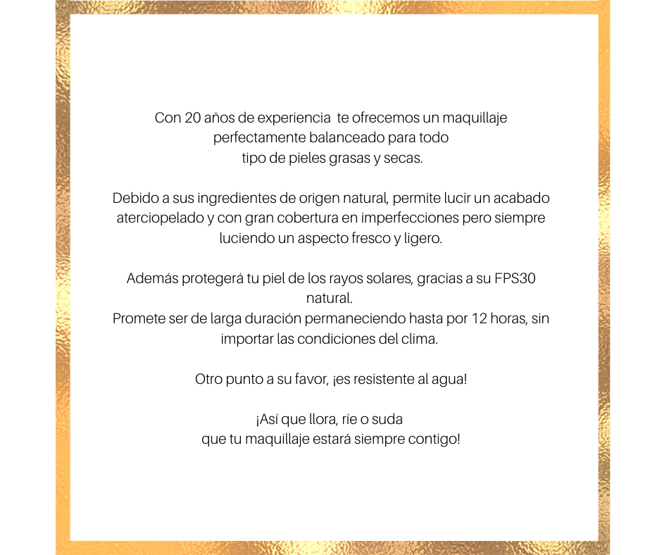 Para mayor fijación: Si deseas que tu maquillaje dure por más tiempo te recomendamos aplicar nuestro Toque Final (fijador de maquillaje) ó Primer Sublime con Colágeno.